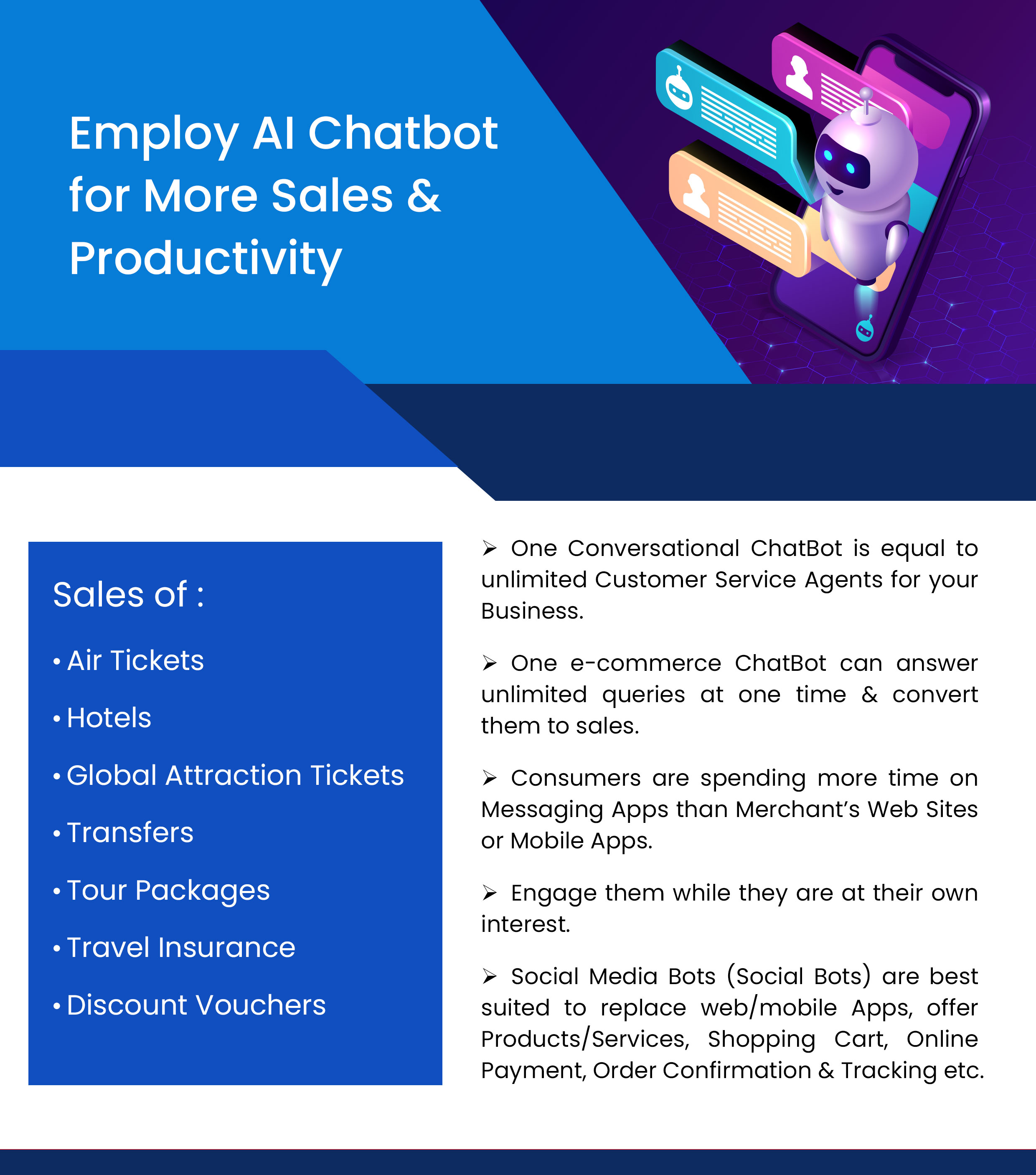 Implement OBMS to simplify the process of online booking, inventory management, package customization, back-office management, itinerary creation, leads generation, accounting, digital marketing and social media & chatbot integration to help your travel agency to maximize bookings, reduce their cost and increase productivity.